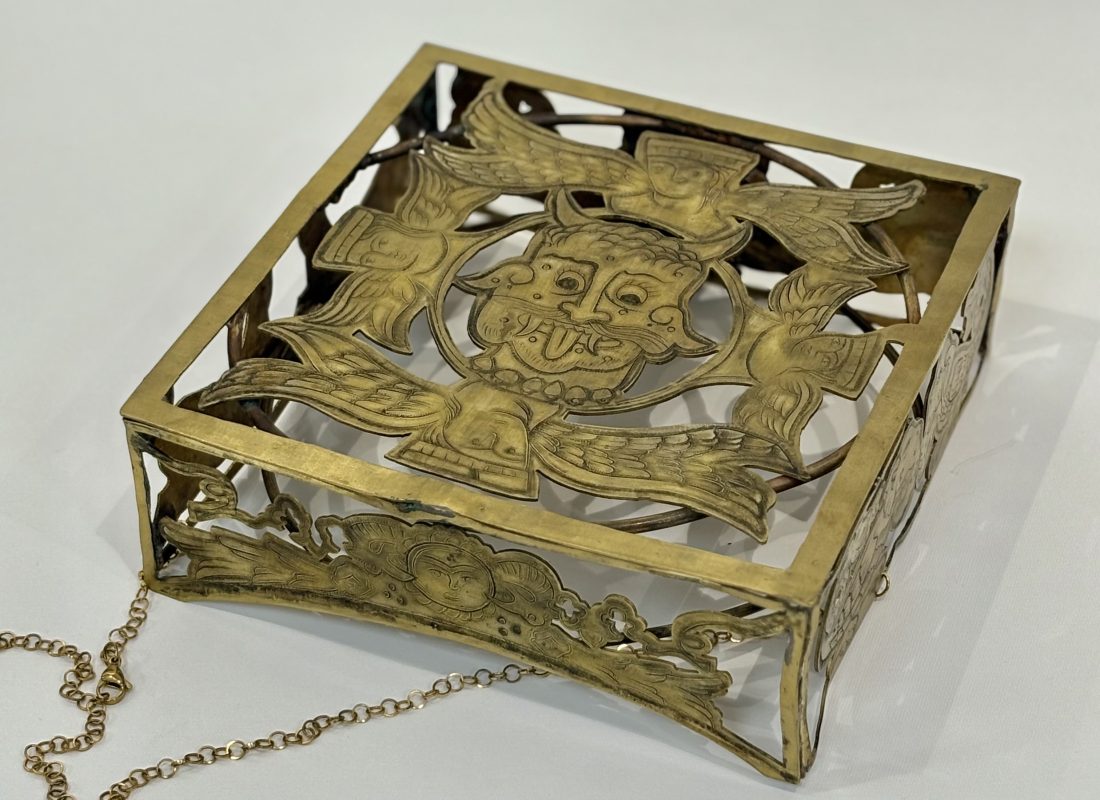 Description: This project is conceived as a reinterpretation of the sacred architectural features of Saqānfars in Mazandaran — traditional wooden structures that once hosted ritual ceremonies at the heart of village communities. The hat’s square geometry echoes the foundational plan of these shrines, while its curved front, inspired by the carved gateways and inscriptions of Saqānfars, serves as a symbolic threshold between the material and the spiritual. Motifs drawn from the sun and dragon mythology embody cosmic forces deeply rooted in Persian tradition. Through this work, I seek to transform the grandeur and spirituality of historical forms into ornaments that are not merely worn, but possess a commanding presence — creations that seem to dwell upon the body rather than be possessed by it; a bridge between ritual, myth, and contemporary aesthetics. ____________________________ این پروژه بازتعبیری از عناصر معماری مذهبی سَقّانفارهای مازندران است؛ سازههایی سنتی که روزگاری میزبان آیینهای مقدس در قلب جوامع روستایی بودند. فرم مربع کلاه بازتابی از پلان اصلی این بناهاست و پیشانیِ منحنی آن، با الهام از سردرها و کتیبههای سقانفار، همچون دروازهای نمادین میان جهان مادی و ساحت معنوی عمل میکند. نقوش برگرفته از اسطورههای خورشید و اژدها در این اثر، تجسمی از نیروهای کیهانی و رازآلودیاند که در سنتهای کهن ایرانی جریان دارند. در این مجموعه، من به دنبال آنم که عظمت و روحانیت فرمهای تاریخی را به زیوری تبدیل کنم که نه صرفاً پوشیدنی، بلکه حضوری باشکوه و معناگر در برابر بدن باشد؛ آثاری که گویی بر انسان سوارند، نه انسان بر آنها — پلی میان آیین، اسطوره و زیباییشناسی معاصر.