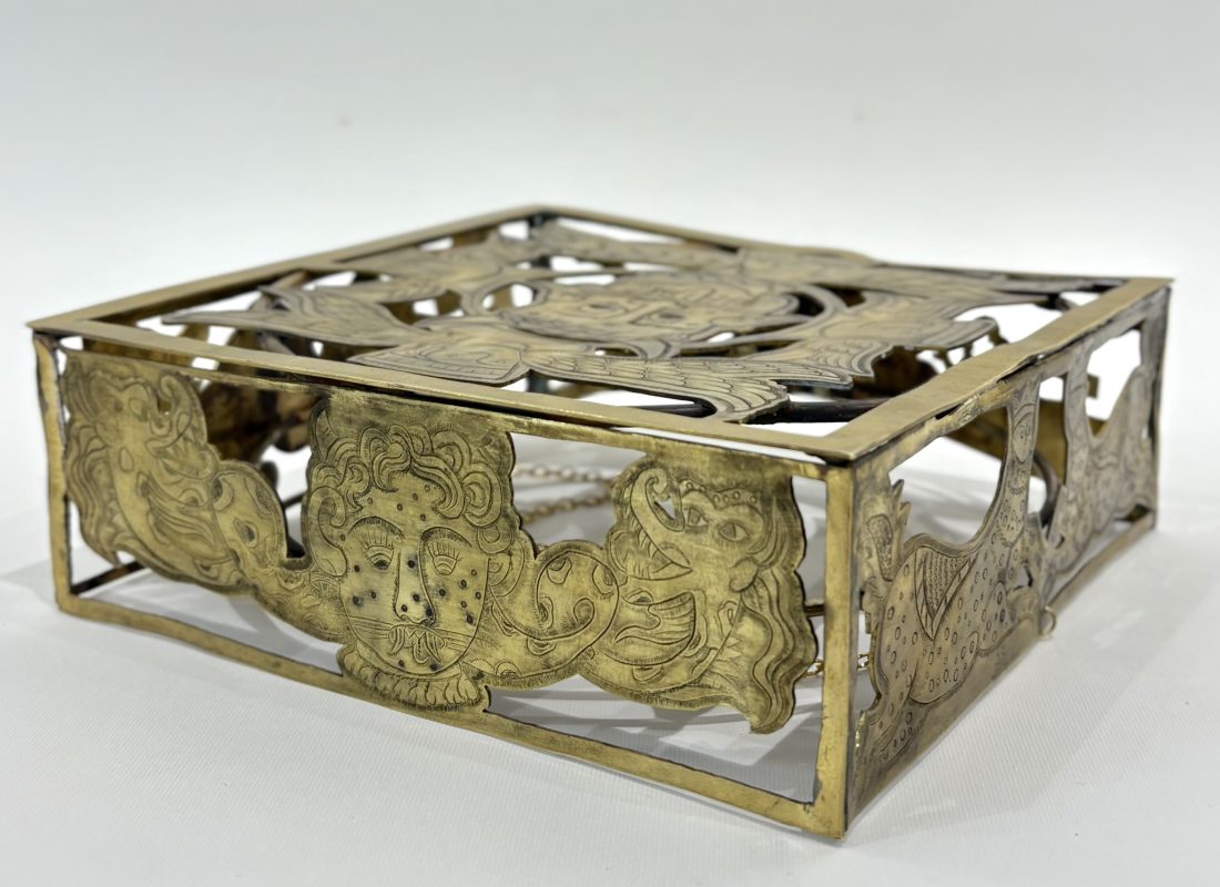 Description: This project is conceived as a reinterpretation of the sacred architectural features of Saqānfars in Mazandaran — traditional wooden structures that once hosted ritual ceremonies at the heart of village communities. The hat’s square geometry echoes the foundational plan of these shrines, while its curved front, inspired by the carved gateways and inscriptions of Saqānfars, serves as a symbolic threshold between the material and the spiritual. Motifs drawn from the sun and dragon mythology embody cosmic forces deeply rooted in Persian tradition. Through this work, I seek to transform the grandeur and spirituality of historical forms into ornaments that are not merely worn, but possess a commanding presence — creations that seem to dwell upon the body rather than be possessed by it; a bridge between ritual, myth, and contemporary aesthetics. ___________________________ این پروژه بازتعبیری از عناصر معماری مذهبی سَقّانفارهای مازندران است؛ سازههایی سنتی که روزگاری میزبان آیینهای مقدس در قلب جوامع روستایی بودند. فرم مربع کلاه بازتابی از پلان اصلی این بناهاست و پیشانیِ منحنی آن، با الهام از سردرها و کتیبههای سقانفار، همچون دروازهای نمادین میان جهان مادی و ساحت معنوی عمل میکند. نقوش برگرفته از اسطورههای خورشید و اژدها در این اثر، تجسمی از نیروهای کیهانی و رازآلودیاند که در سنتهای کهن ایرانی جریان دارند. در این مجموعه، من به دنبال آنم که عظمت و روحانیت فرمهای تاریخی را به زیوری تبدیل کنم که نه صرفاً پوشیدنی، بلکه حضوری باشکوه و معناگر در برابر بدن باشد؛ آثاری که گویی بر انسان سوارند، نه انسان بر آنها — پلی میان آیین، اسطوره و زیباییشناسی معاصر.