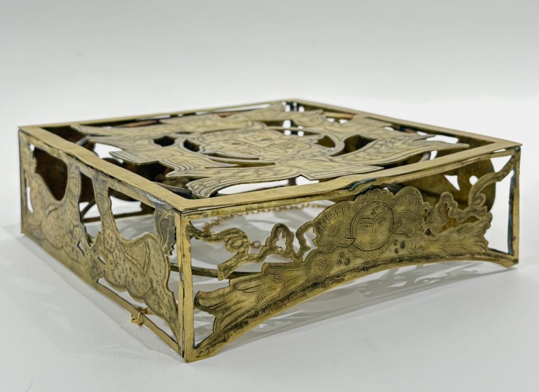 Description: This project is conceived as a reinterpretation of the sacred architectural features of Saqānfars in Mazandaran — traditional wooden structures that once hosted ritual ceremonies at the heart of village communities. The hat’s square geometry echoes the foundational plan of these shrines, while its curved front, inspired by the carved gateways and inscriptions of Saqānfars, serves as a symbolic threshold between the material and the spiritual. Motifs drawn from the sun and dragon mythology embody cosmic forces deeply rooted in Persian tradition. Through this work, I seek to transform the grandeur and spirituality of historical forms into ornaments that are not merely worn, but possess a commanding presence — creations that seem to dwell upon the body rather than be possessed by it; a bridge between ritual, myth, and contemporary aesthetics.